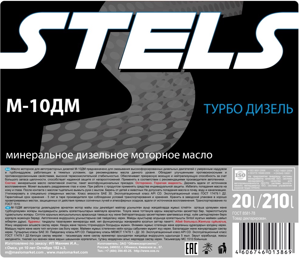 Масло моторное STELS М10ДМ 210л