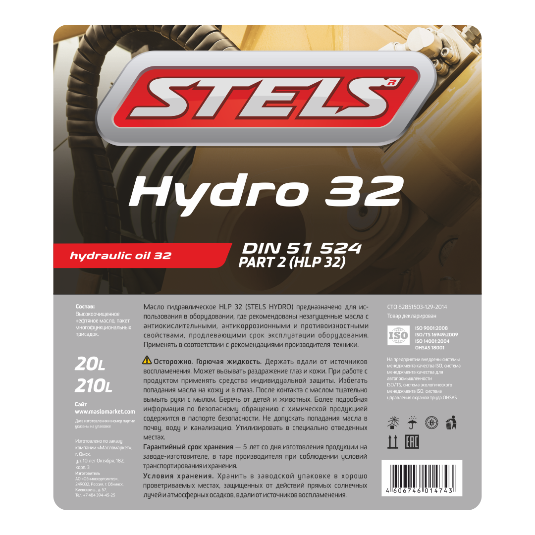 Высококачественное гидравлическое масло HLP 32 для использования в гидросистемах импортного и отечественного промышленного оборудования, требующих применения высококачественных легированных масел.