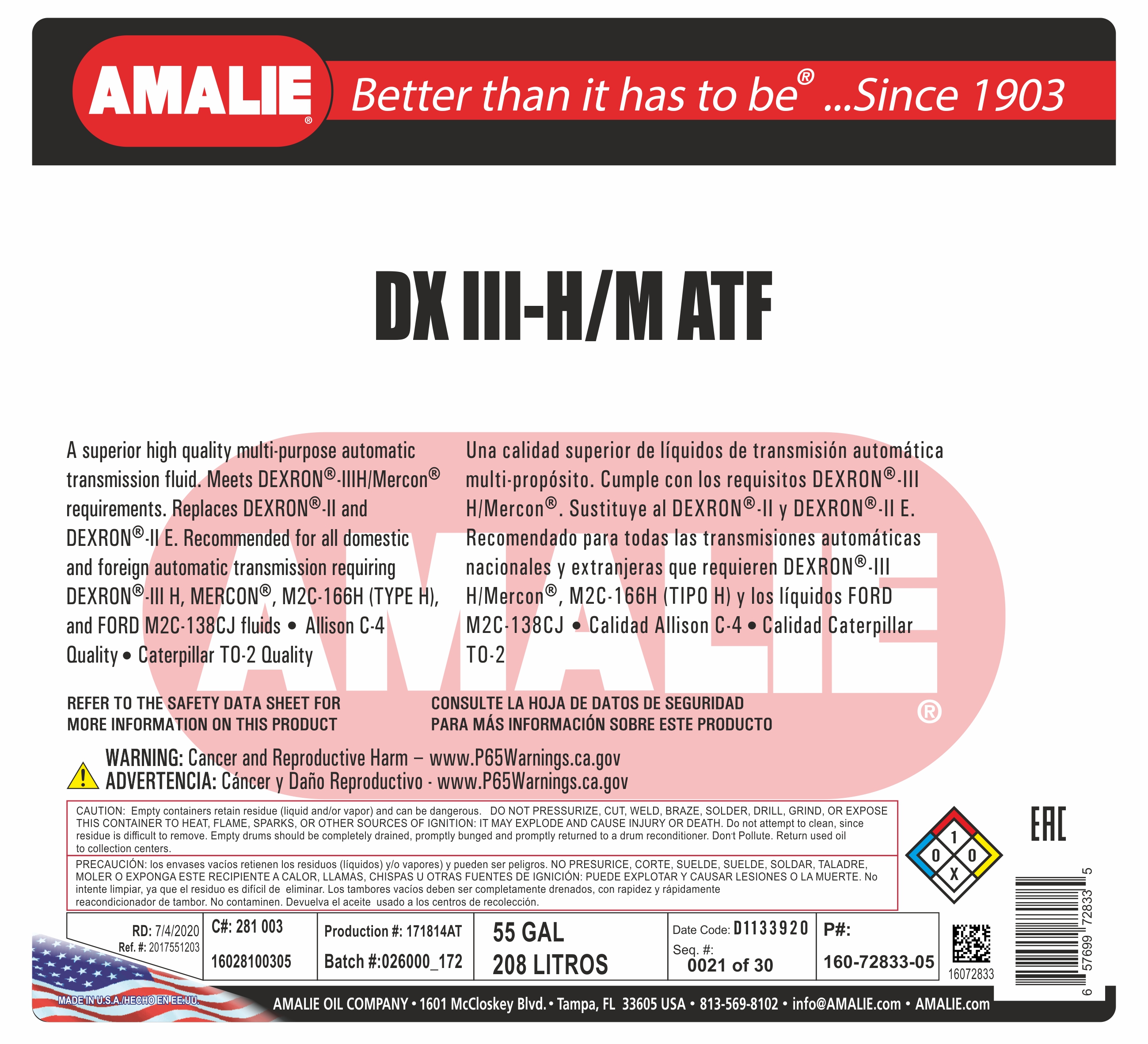 Масло трансмиссионное AMALIE ATF DEXRON III-H\M 1л розлив из бочки